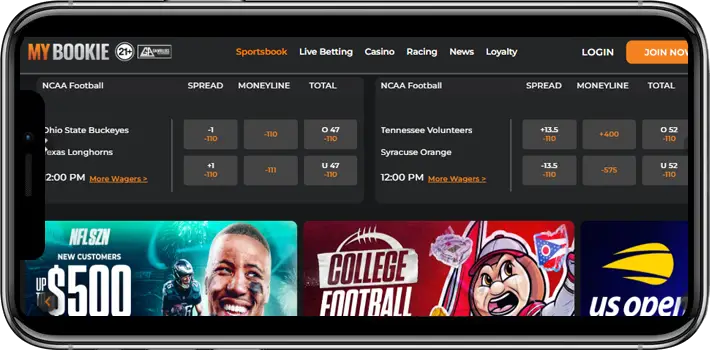 For returning users, MyBookie offers a 25% reload bonus on qualifying deposits and a $100 referral bonus per friend (uncapped). That’s a rare perk in this space.