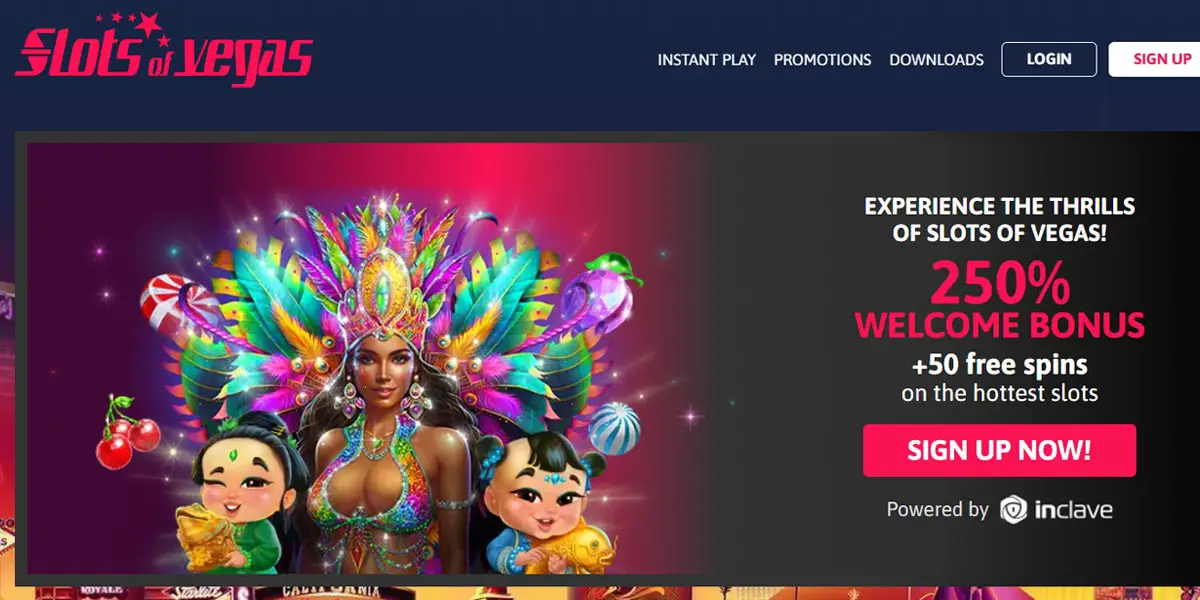 Fire up Slots of Vegas, and your first thought might be, “Hey, this doesn’t look half bad.” The site opens with glitzy banners, oversized bonus buttons, and a wall of slot titles just waiting for your click. It’s loud. It’s busy. It’s designed to get your pulse going. But that’s also where the red flags start waving.